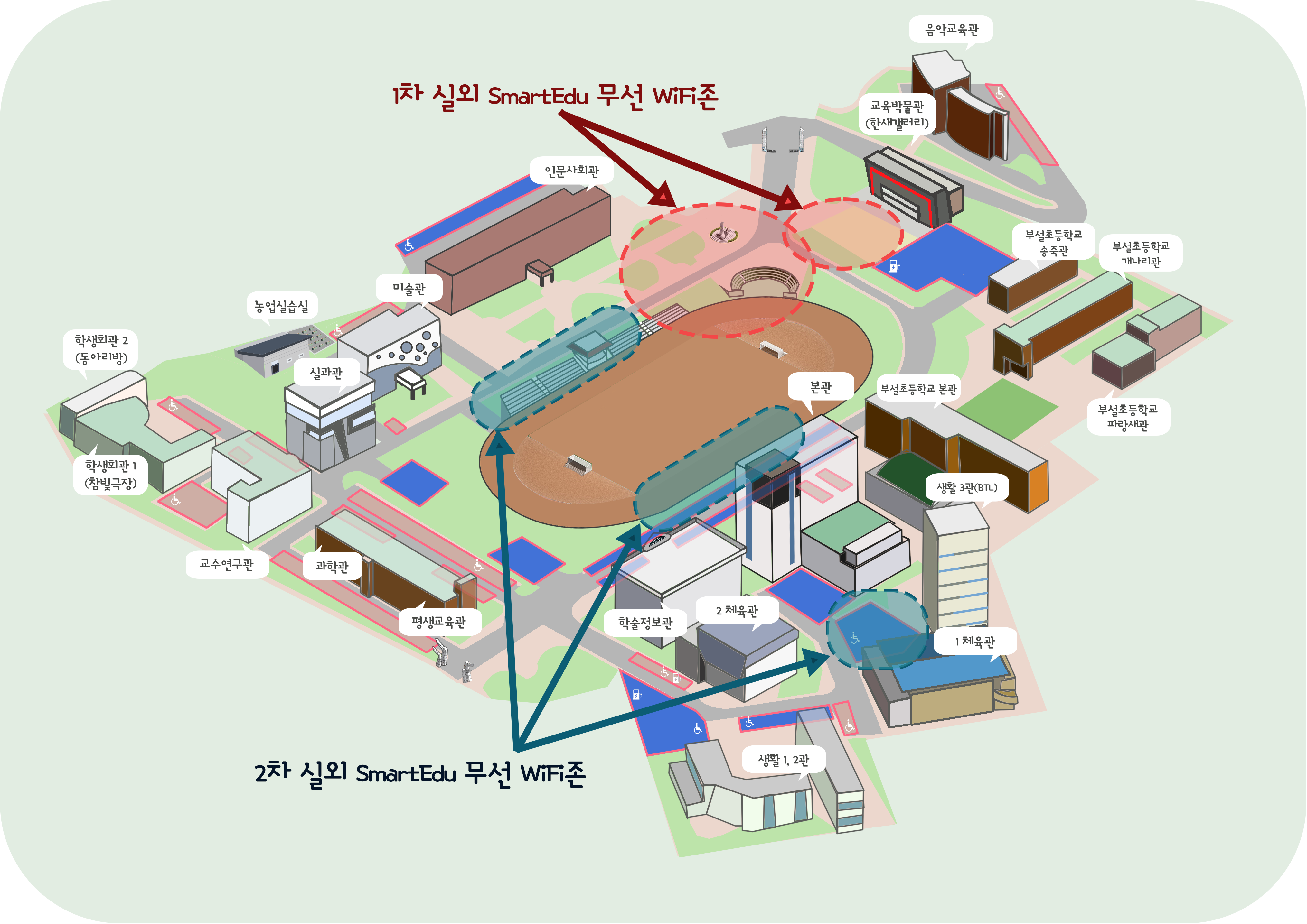 2024년 1차 설치에서는 한새탑, 원형극장, 박물관 등 주요 캠퍼스 구역에 SmartEdu WiFi를 구축한 바 있으며, 이번 2차 설치는 인문사회관 앞 운동장 사열대 및 관람석, 본관 앞 운동장 관람석, 생활관 앞 휴식공간, 테니스장 등 학생들의 활동이 활발한 야외 공간을 중심으로 진행되었다.