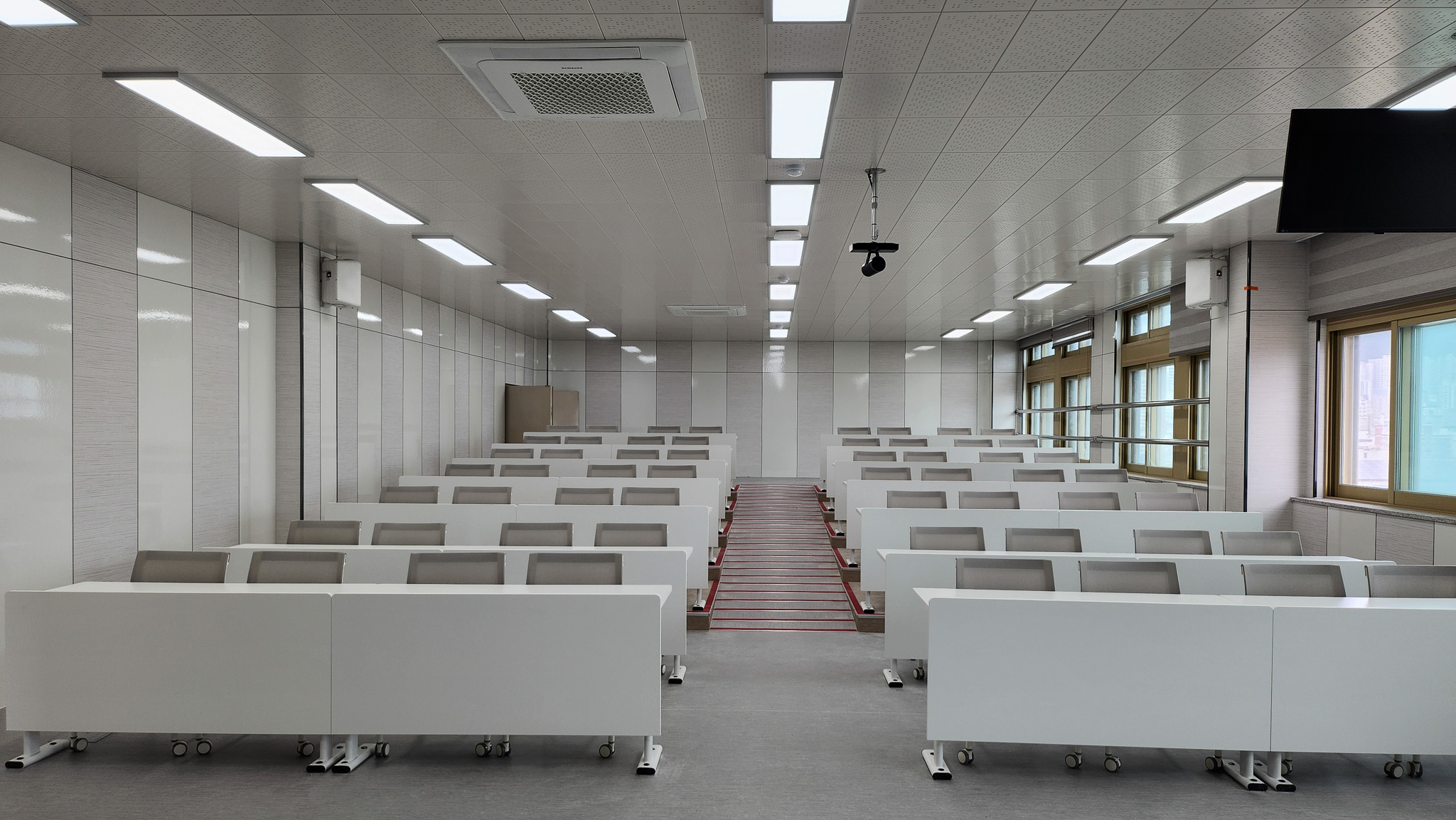 이번 리모델링을 통해 벽체·바닥·천장 공사뿐만 아니라 가구 교체와 디지털 장비 설치가 함께 이뤄졌다. 고해상도 녹화카메라 시스템을 도입해 강의 장면을 다각도로 촬영하고 실시간 중계 및 녹화가 가능해졌으며, 듀얼 모니터에 탑재된 판서 기능을 통해 교수자는 자료 위에 직접 필기하거나 실시간 메모를 남길 수 있게 됐다. 이를 통해 시각적 이해와 상호작용이 강화되고, 하이브리드 수업 운영 및 교수·학습의 효율성이 크게 향상됐다.