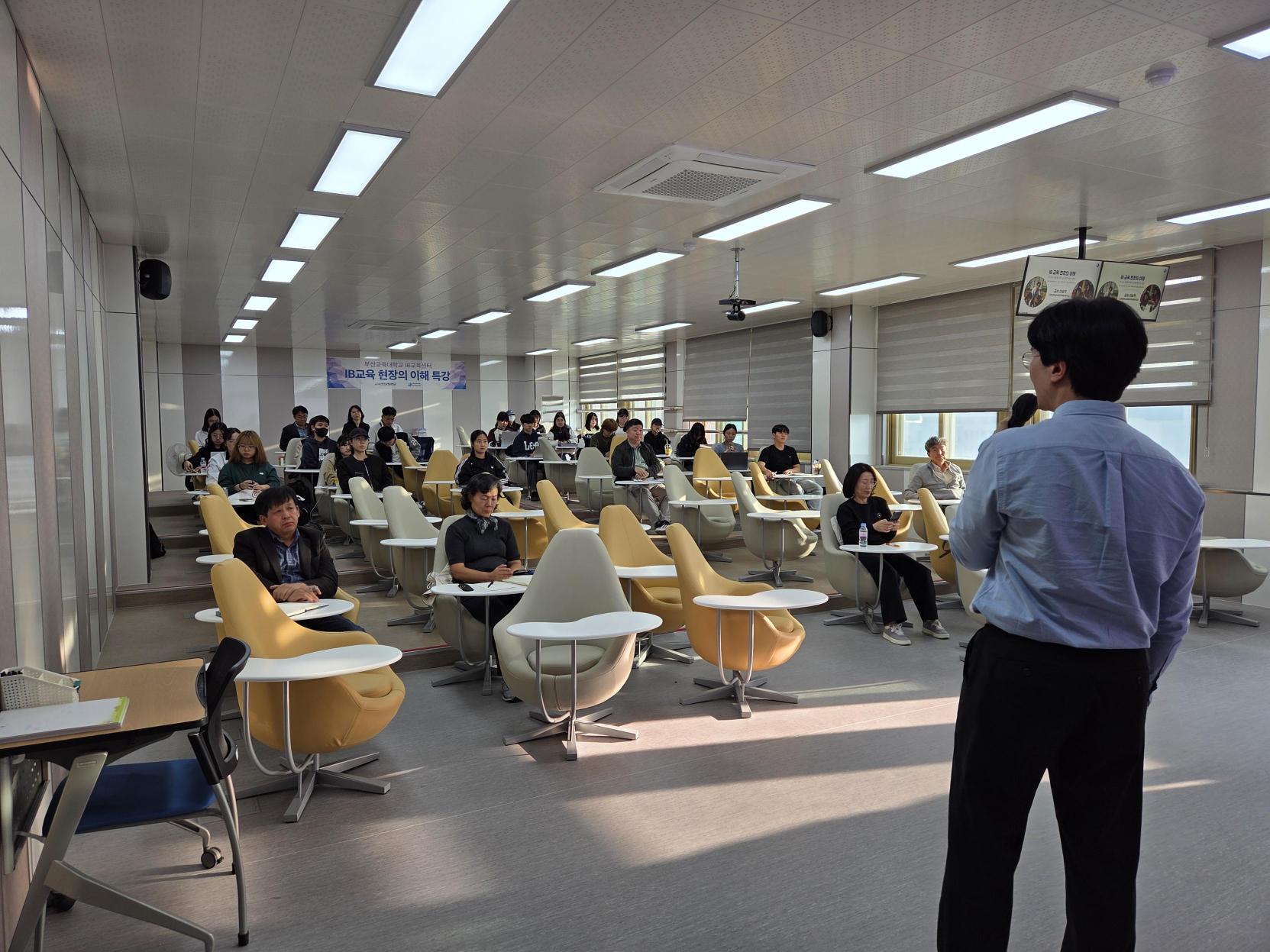 지난 11월 4일(화) 부산교육대학교 본관 5층 11506 강의실에서 부산교육대학교 글로컬 IB교육센터 주관으로 「IB교육 현장의 이해」 특강이 개최됐다. 이번 특강은 미래 교원들의 IB(International Baccalaureate) 교육 이해도와 학교 현장 적용 역량을 높이기 위해 마련된 자리로, 학부생 24명과 교수 9명 등 총 33명이 참여하여 높은 관심을 보였다.