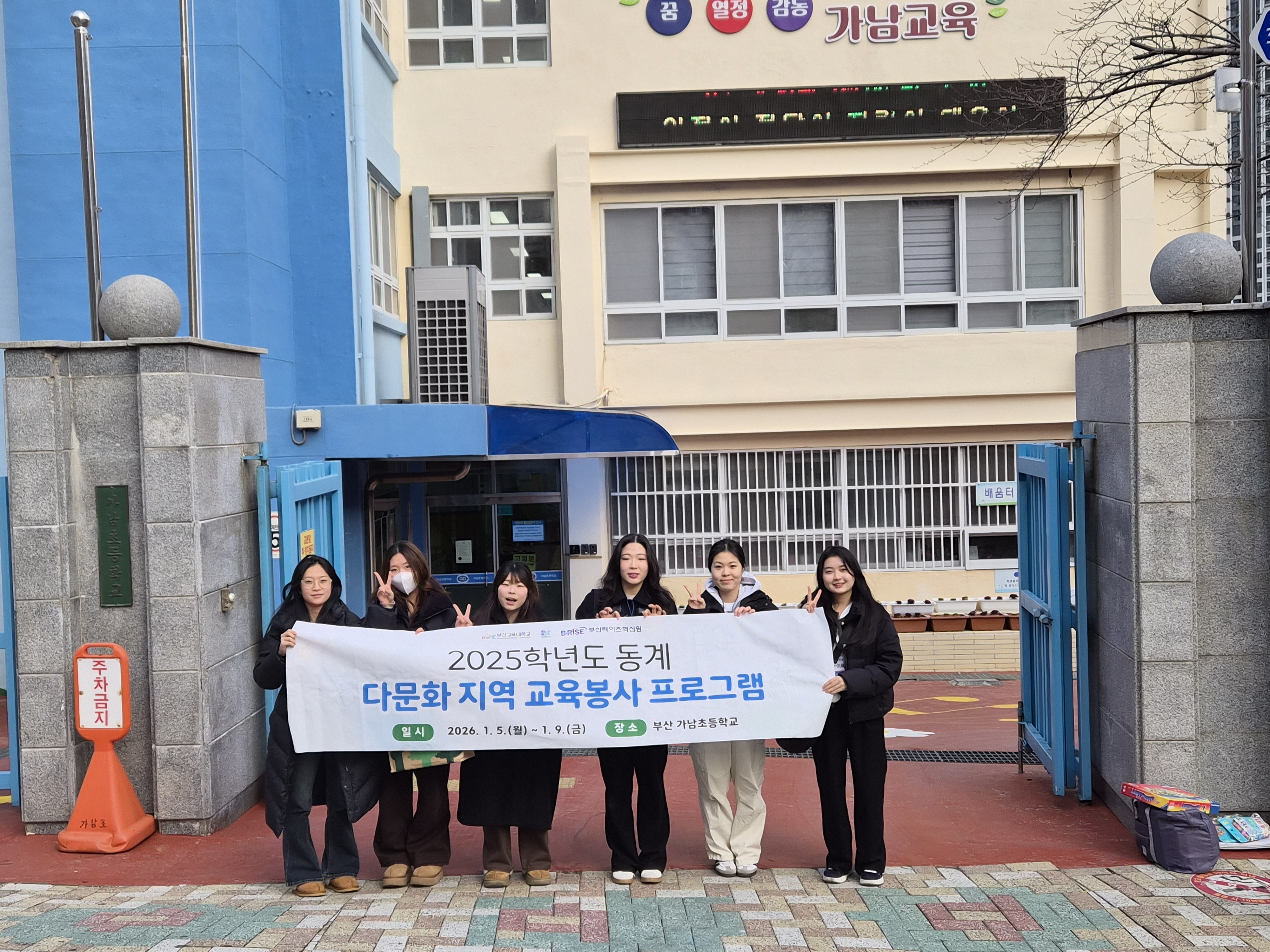 이번 동계 다문화 교육봉사 프로그램은 녹산초등학교(부산광역시 강서구), 신정초등학교(부산광역시 기장군), 가남초등학교(부산광역시 부산진구) 3개교에 우리 학교 학생 6명씩 배정하여 방학 중 교육활동을 지원했다. 참여 학생들은 보드게임을 활용한 학습 활동, 기초학습 보조, 정서 지원 프로그램 등 학교 여건과 학생 특성을 반영한 맞춤형 교육봉사를 진행했다.