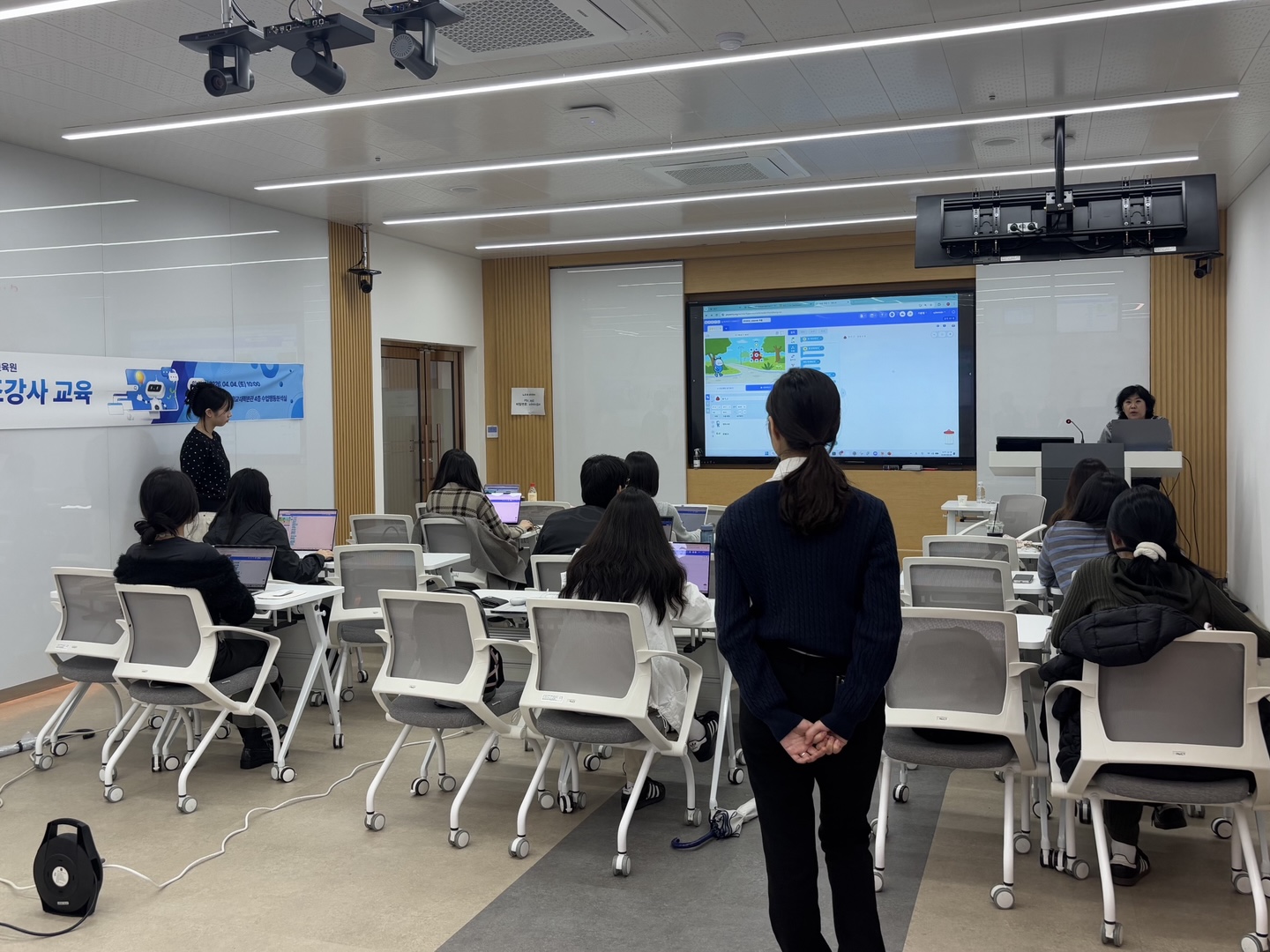 4월 4일 1차시 교육에서는 엔트리 기초·머신러닝·AI 모델링 실습을 진행했으며, 4월 11일 2차시 교육에서는 마이크로비트를 활용한 하드웨어 융합 등 강사로서의 실무 역량을 다지는 데 집중했다.